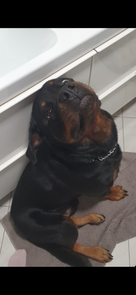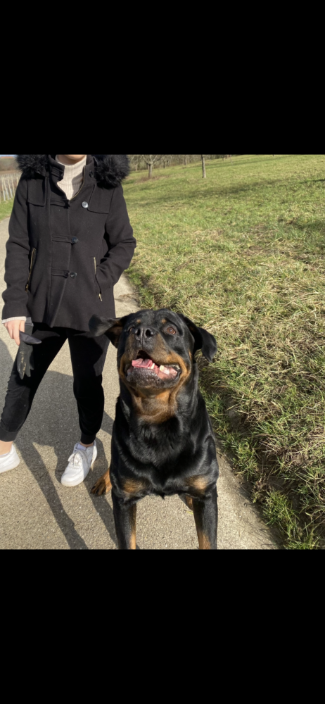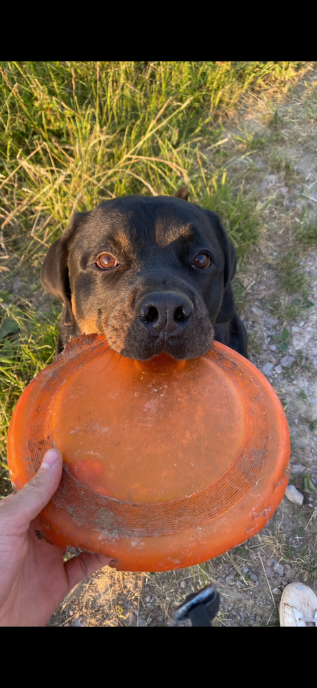 Wir haben einen 6 Jahre alten Rottweiler namens Ace. Ace ist seit dem Welpenalter bei uns. In seinen ersten Lebensjahren war alles unauffällig, er ist gut sozialisiert, hört zuverlässig auf Kommandos, läuft draußen problemlos ohne Leine, zeigt keinerlei Aggression gegenüber fremden Menschen oder anderen Hunden und ist grundsätzlich ein sehr lieber, verspielter Hund – seine größte Leidenschaft ist die Frisbee.